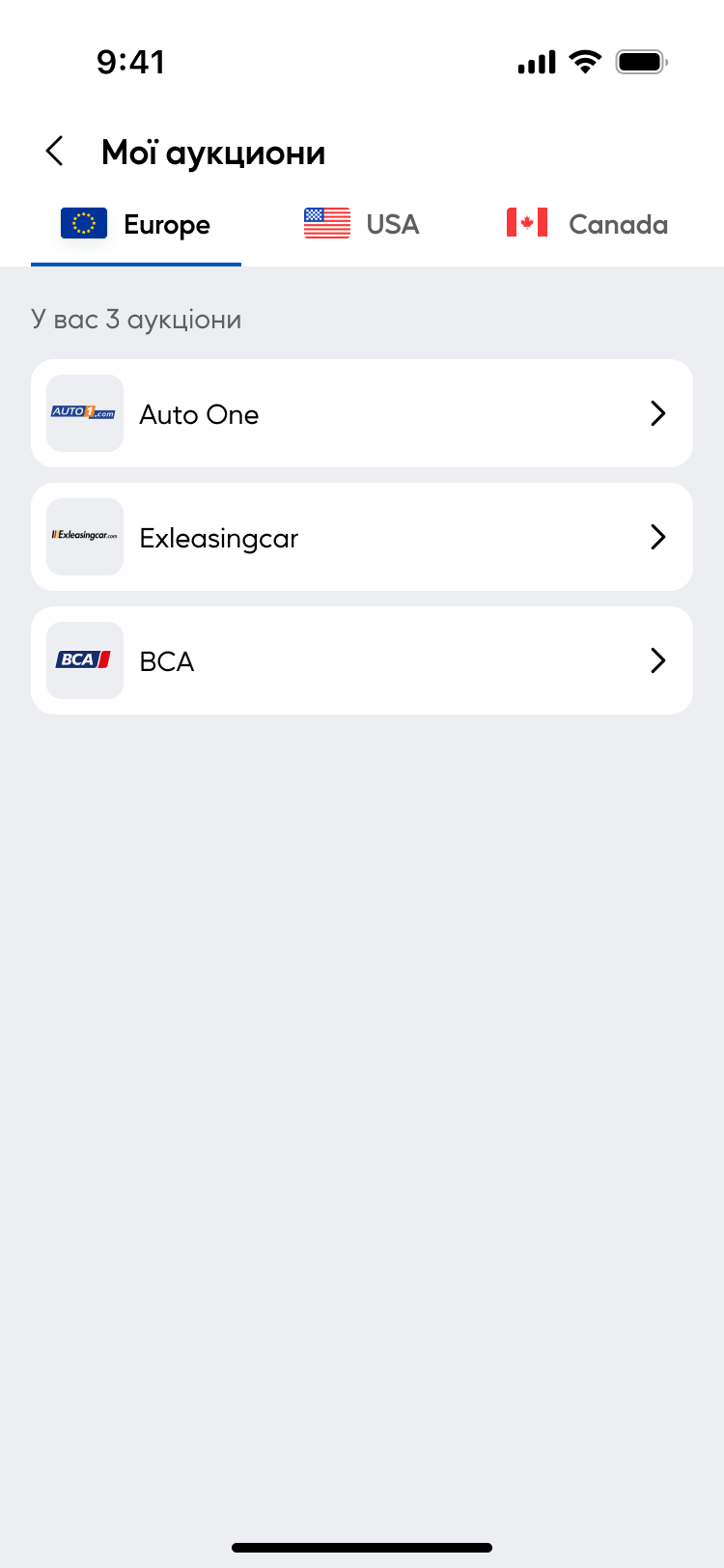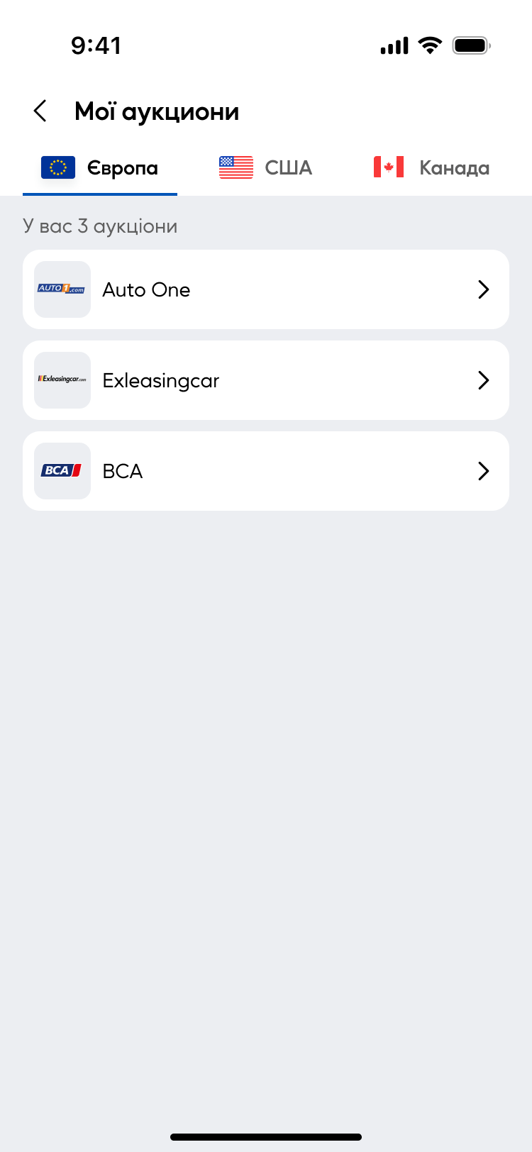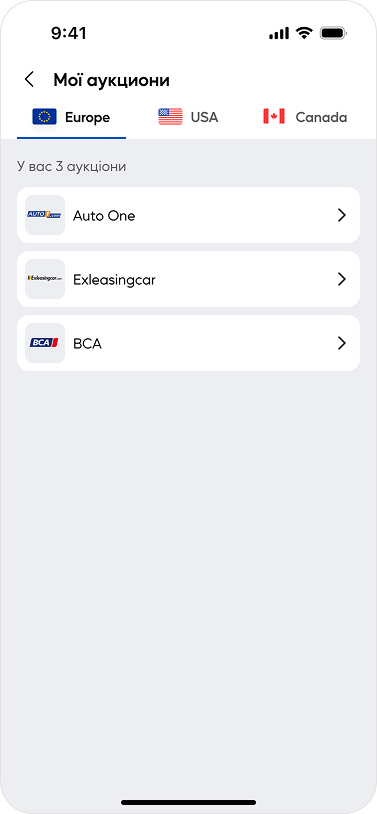 Перегляд, участь і робота з автомобільними аукціонами безпосередньо через додаток.