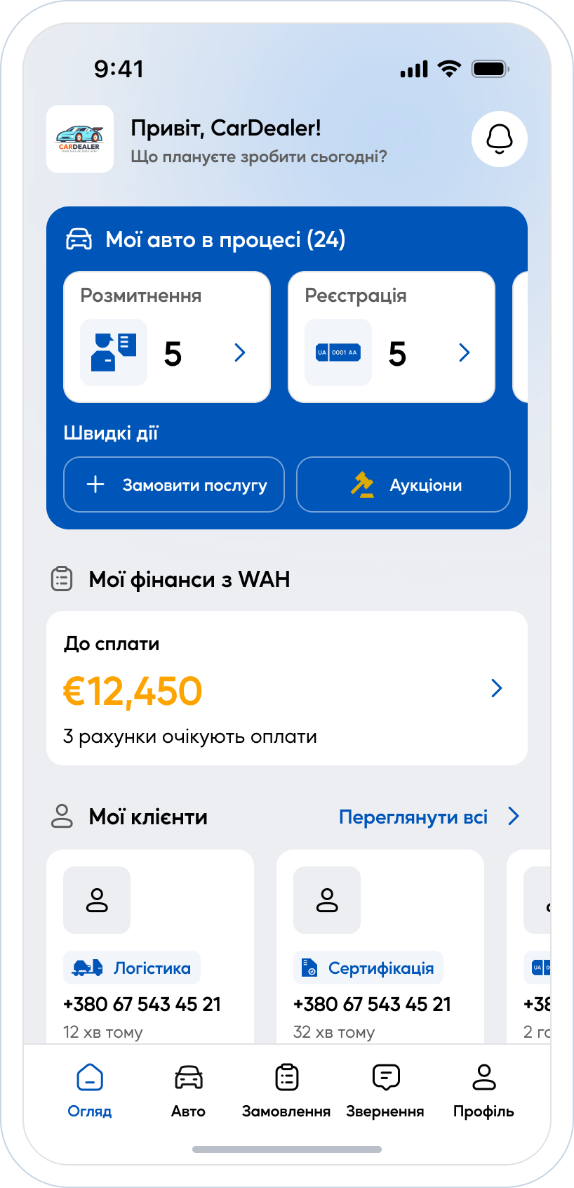 Зручна взаємодія з командою WAH та контроль усіх етапів роботи з авто в одному інтерфейсі.